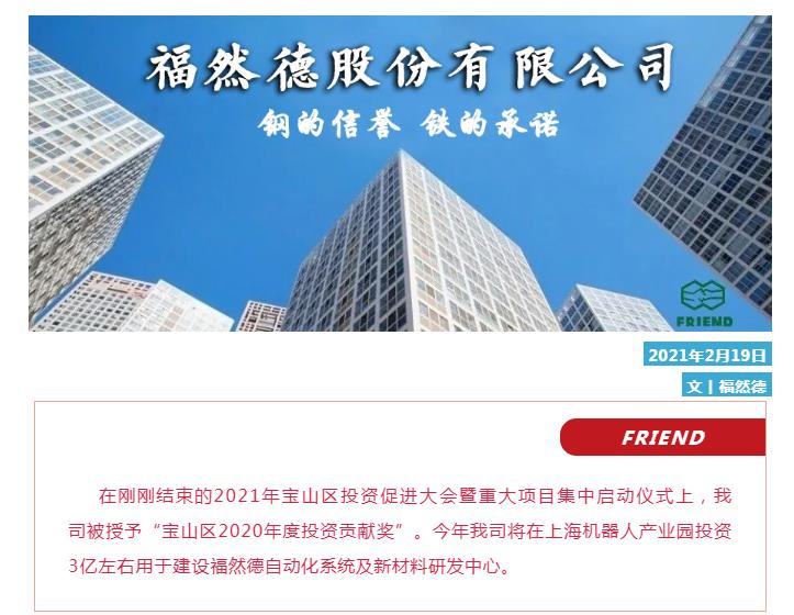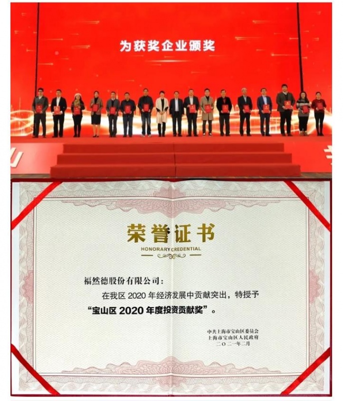 福然德被授予“宝山区2020年度投资贡献奖”
